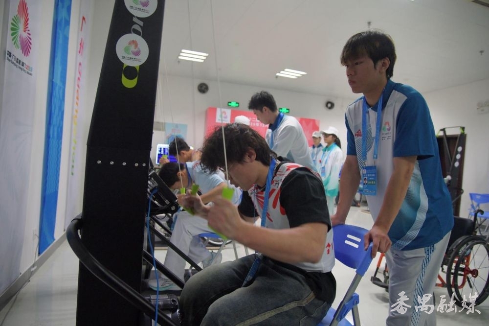 “孙海龙,拼了!”“苏凌轩,保持!”伴随着一声声的加油呐喊,肢体残疾坐姿组混合接力:3×2分钟计时比赛选手们的速度明显提升不少,额头的汗珠不断增多。赛后,北京队领队吴宏宇表示,从运动生理学角度而言,加油助威声其实是一种生物反馈,用外界的这种声音去刺激他们,让他们爆发出比平时训练水平要高好几倍的能量。“虽然我们最后只比宁夏队多4米,但也可能就是在加油声中,运动员把这4米给顶上去了。你看我们队员赛后都激动得落泪了。”