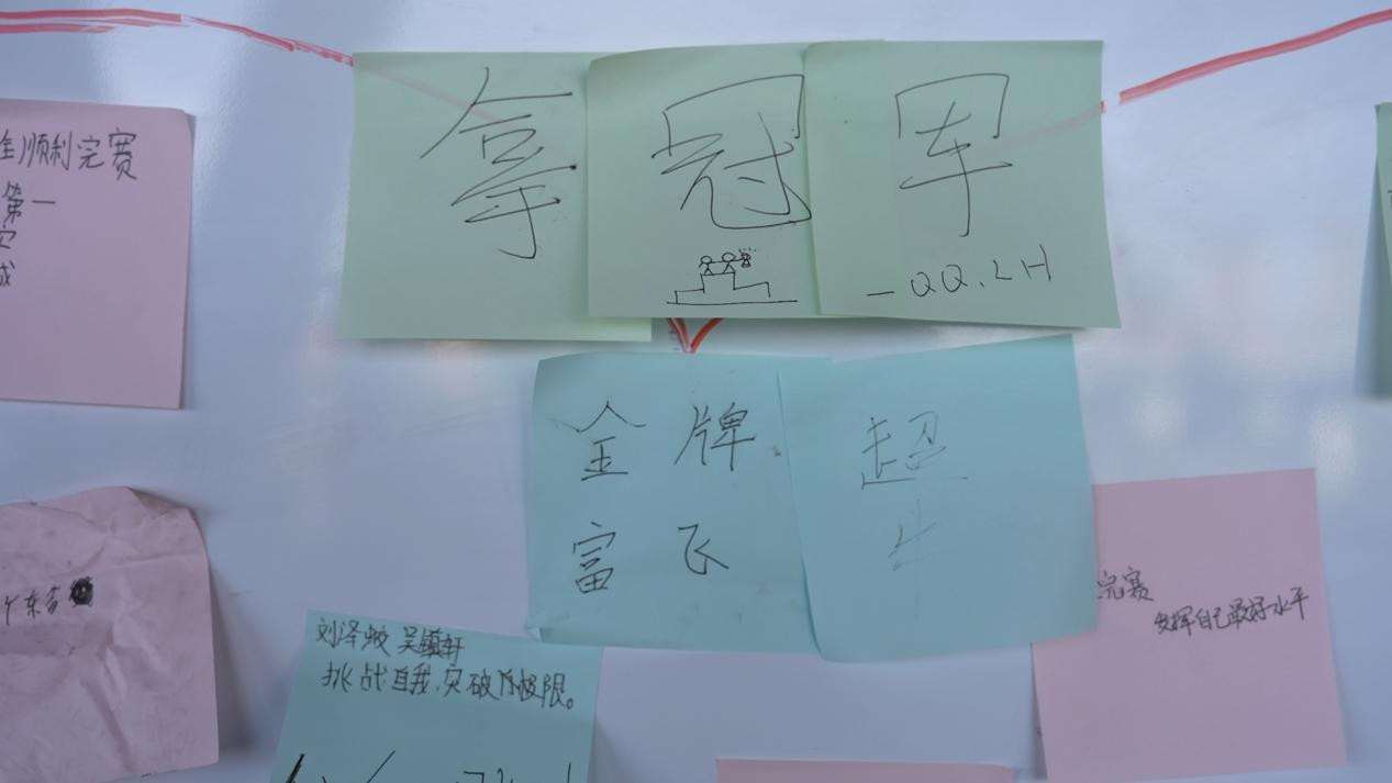 接连的插曲激发出更坚定的斗志。在宿舍外的心愿墙上,“金牌富飞”四个字格外醒目。这句融合两人名字的约定,承载着他们共同的梦想。