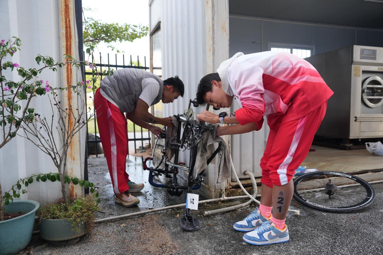 一夜之间,一切归零。新车就位后,机械师连夜奋战,根据他们的骑行习惯、竞技状态,重新调校每一个零件,石金飞和杨奥富也争分夺秒地与“新坐骑”磨合。“新车就像新搭档,需要重新了解它的‘性格’,建立默契。”