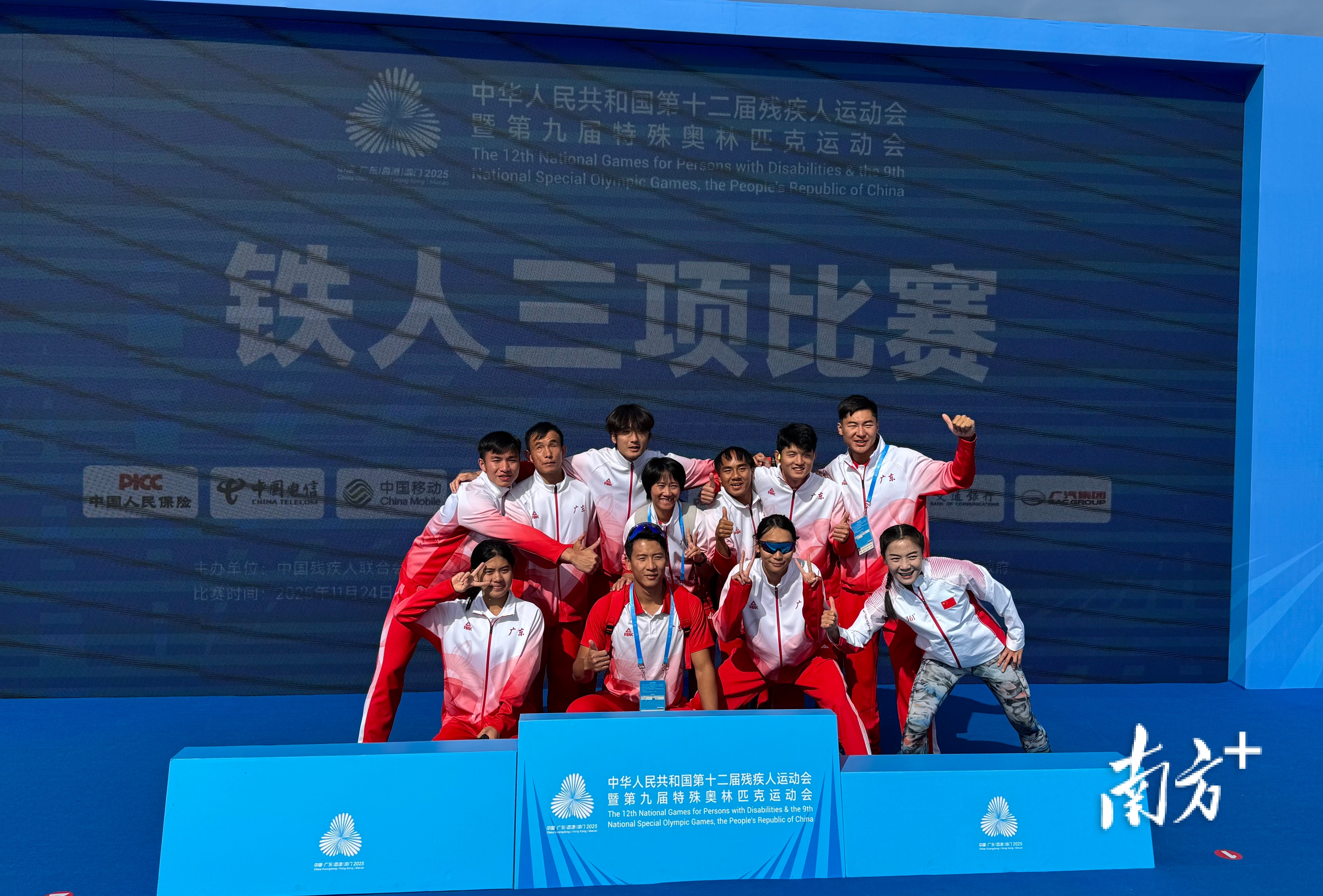 广东残疾人铁人三项队部分队员合照。