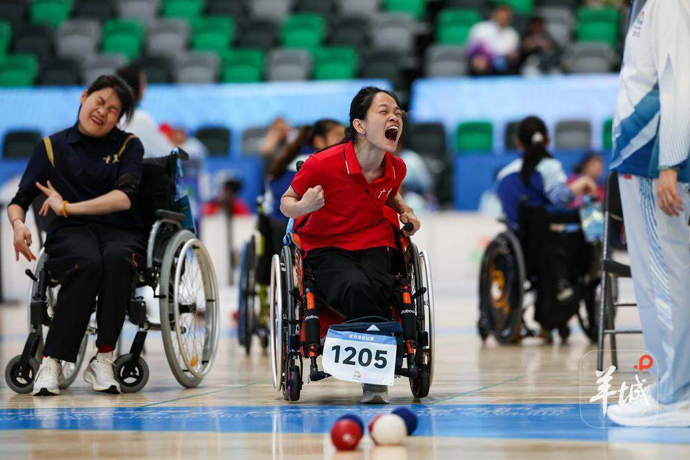 女子个人BC2-1/4决赛中,广东队选手广越楚得分后激动庆祝。羊城晚报记者 蔡嘉鸿 摄
