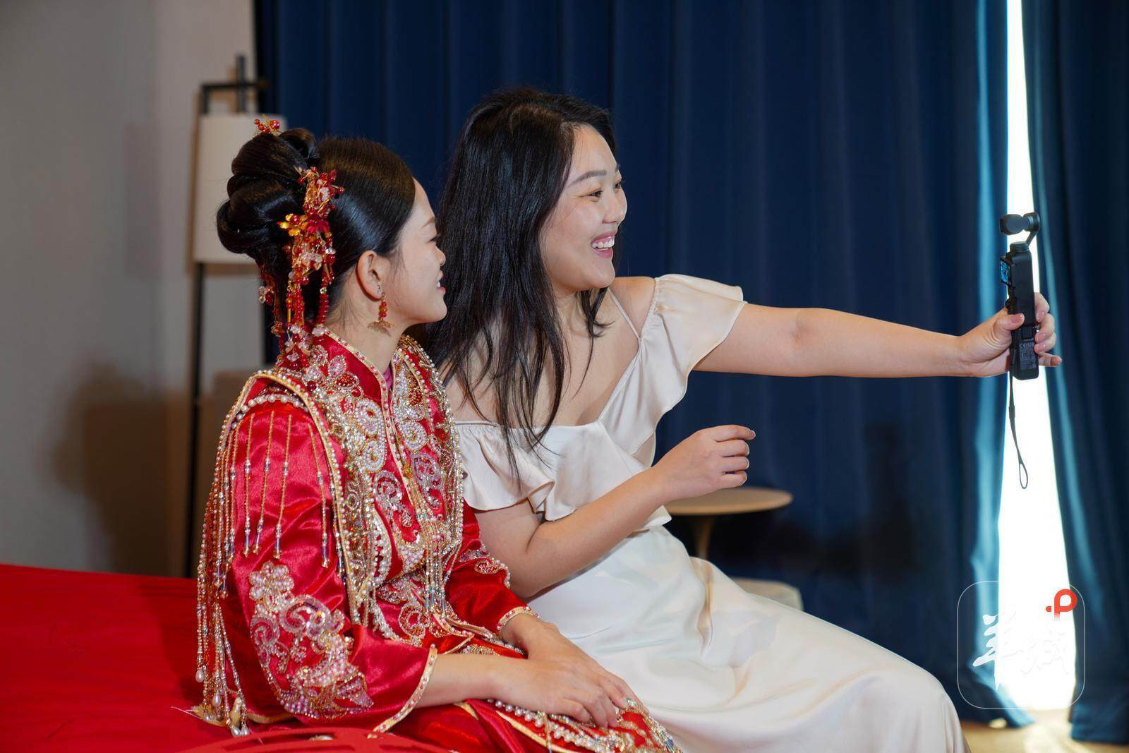 羊城晚报记者柳卓楠采访新娘广越楚。因采访而相识,柳卓楠最后还当上了广越楚的伴娘。羊城晚报记者 宋金峪 摄