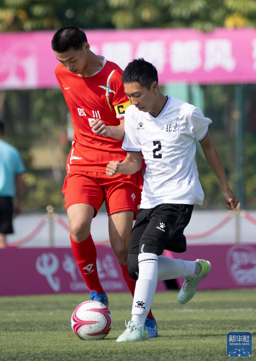 ↑四川队球员严鑫(左)与北京队球员于梓翀在比赛中拼抢。