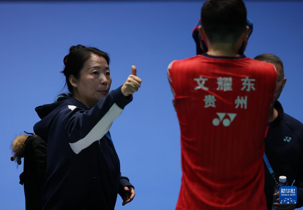 12月11日,贵州队教练在比赛间隙与选手文耀东用手语交流。湖北队选手宋绍阳在男子单打比赛中0比2不敌贵州队选手文耀东。