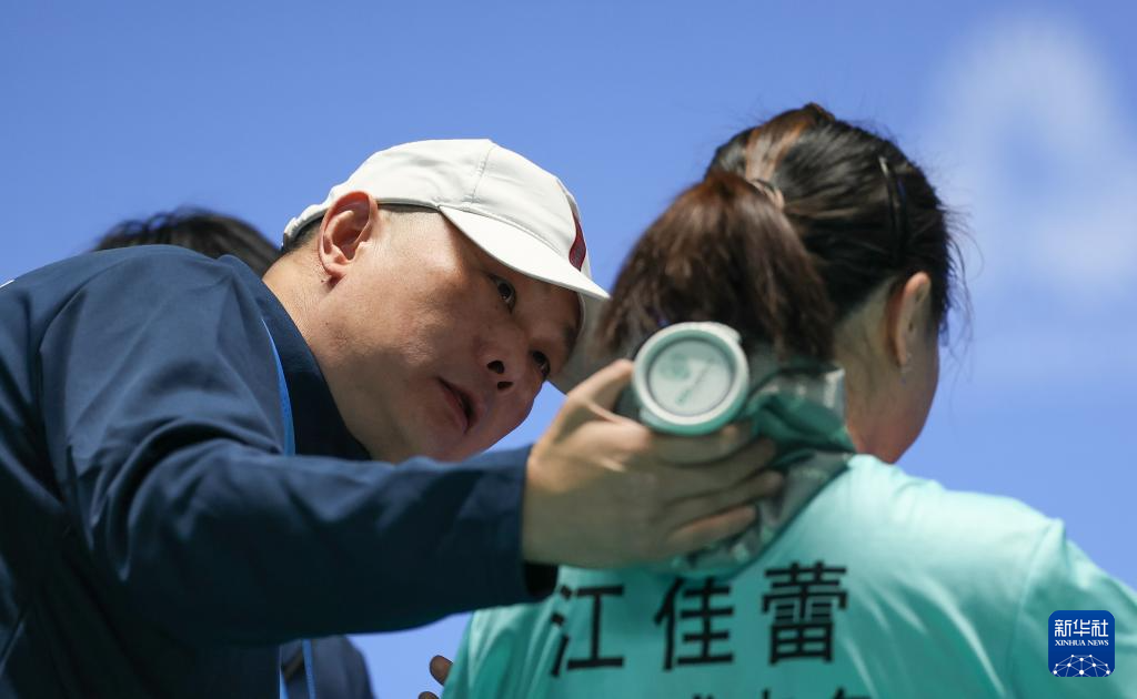 12月11日,湖北队教练在比赛间隙为选手江佳蕾冷敷。湖北队选手江佳蕾在女子单打比赛中1比2不敌贵州队选手王孟兴。