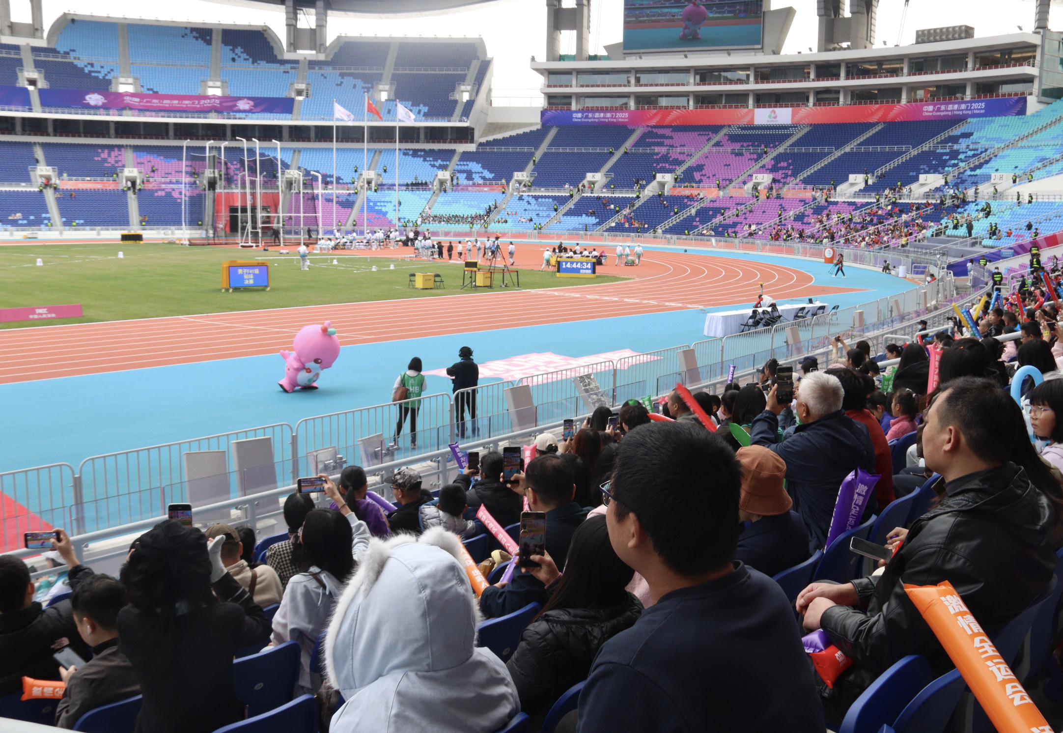 回溯赛事全程,亮点纷呈、热度不减。开赛首日,广东队选手蒋艳红便奋力夺下田径项目首金,为赛事打响头炮。12月12日,“亚洲飞人”苏炳添亲临赛场助阵,以榜样力量为残疾运动员鼓劲助威;12月13日,亚洲女子100米冠军梁小静以颁奖嘉宾身份现身,为运动选手加油助威。彭翠婷、陈冠峰、钟德伦等运动员代表也加入观众和志愿者之中助阵,让现场运动员们备受鼓舞。