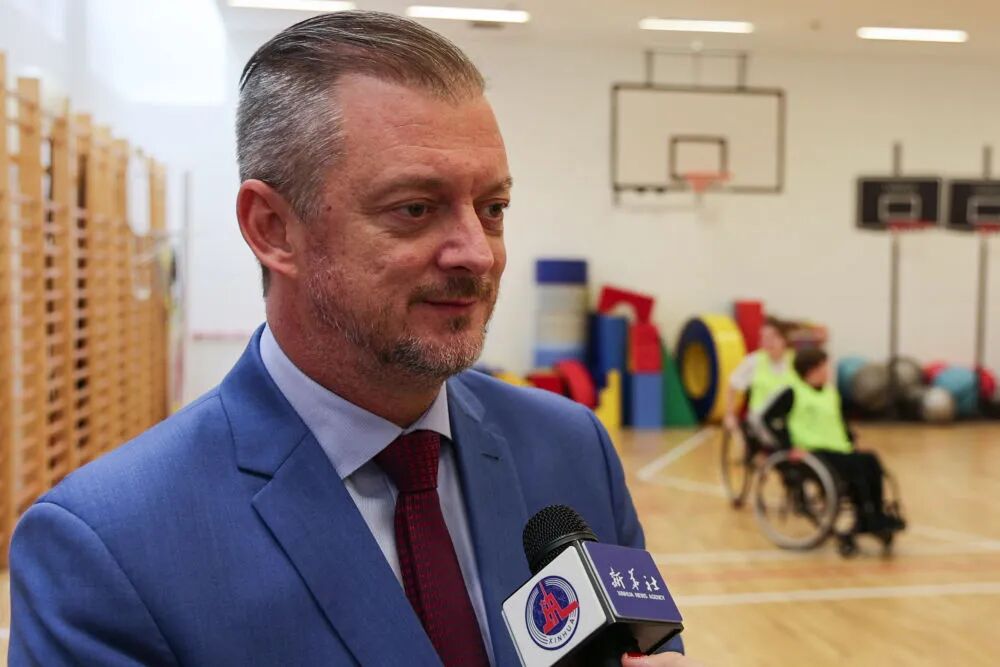 1月13日,国际残奥委会主席安德鲁·帕森斯在参观匈牙利康复治疗机构和残疾儿童体育中心时接受新华社记者采访。新华社发(弗尔季·奥蒂洛摄)