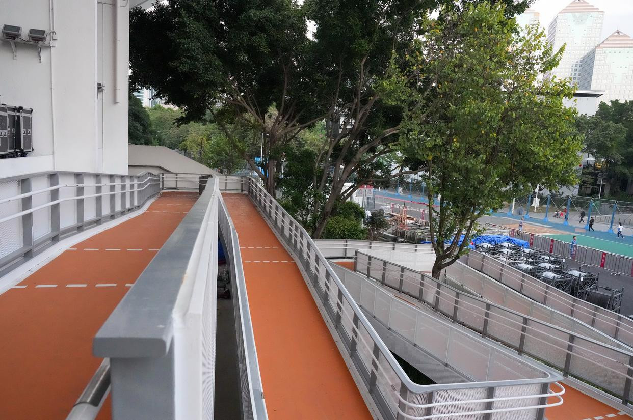 这是广州天河体育中心的轮椅坡道(12月7日摄)。