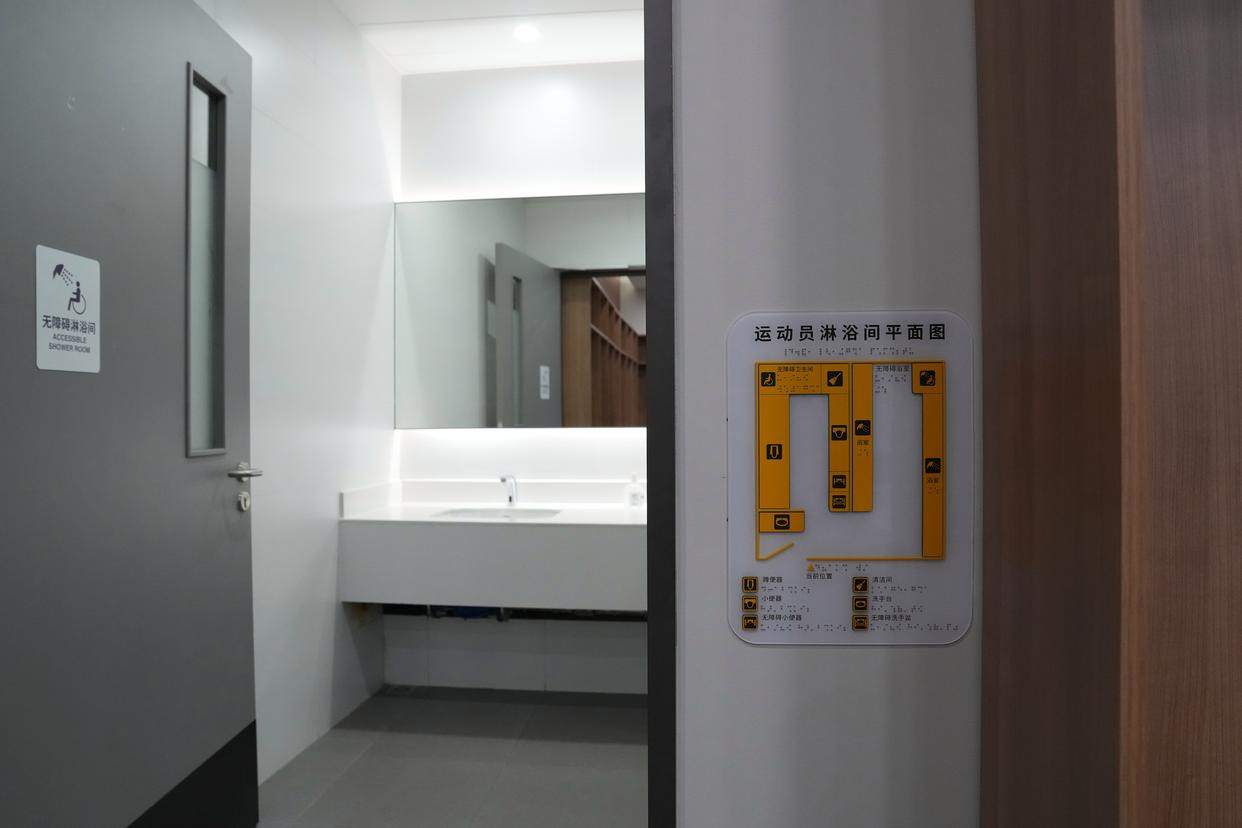 这是广东奥林匹克体育中心体育场的无障碍淋浴间(12月7日摄)。