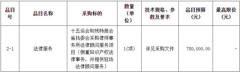 采购包1(十五运会和残特奥会省执委会采购律师事务所法律顾问服务项目(综合法律事务,并提供驻场法律顾问服务)):