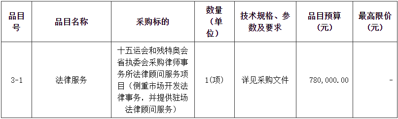 采购包3(十五运会和残特奥会省执委会采购律师事务所法律顾问服务项目(侧重市场开发法律事务,并提供驻场法律顾问服务)):