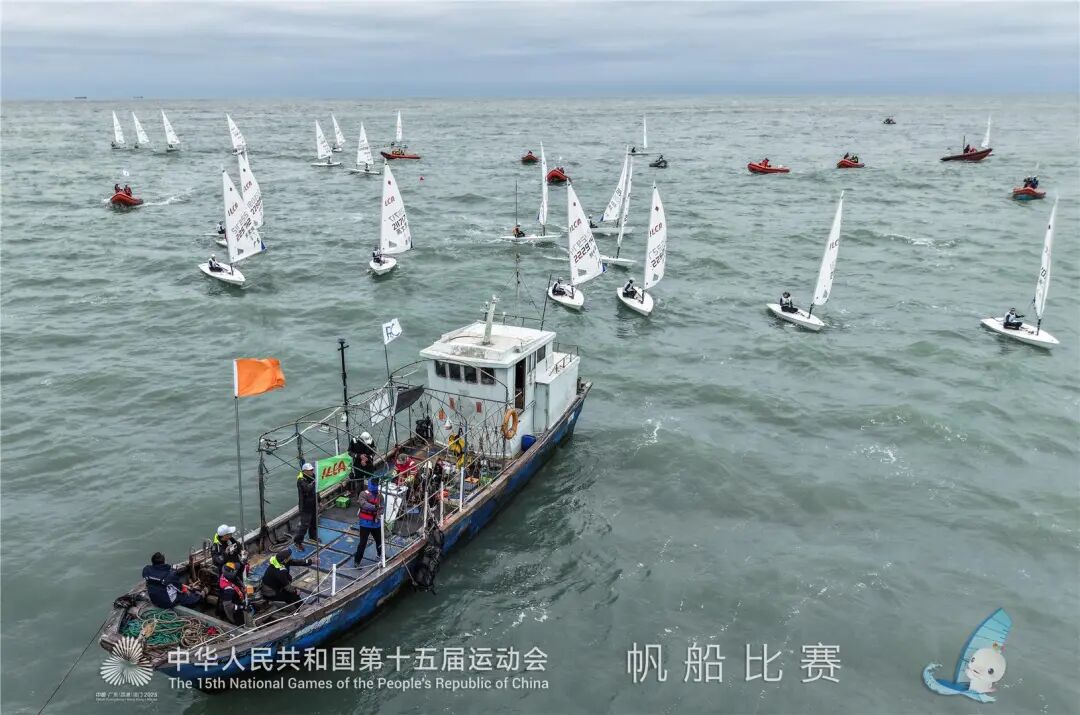 金秋时节,汕尾红海湾海面上白帆点点、海风轻拂,运动员们驾驶帆船在波光粼粼的海面上划出优美弧线。