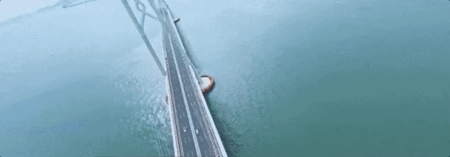 △中山马鞍岛滨海步道远观深中通道与大海同框