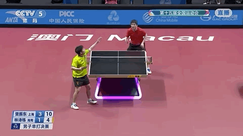 △16日,全运会乒乓球男决赛中樊振东取胜。