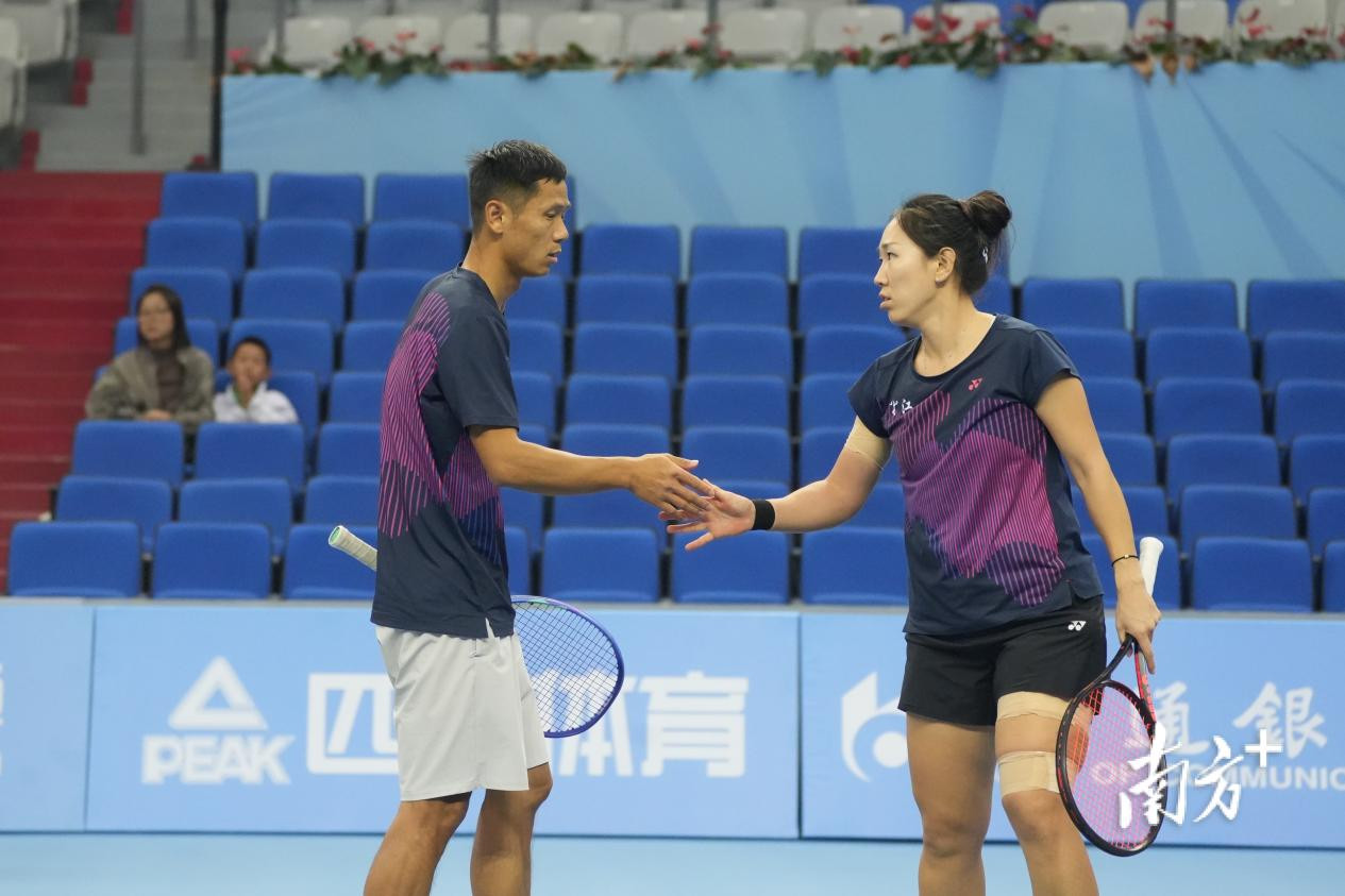 12月3日,中华人民共和国第十二届残疾人运动会暨第九届特殊奥林匹克运动会网球比赛继续在横琴国际网球中心进行,在听障组混合双打决赛中,来自浙江队的“夫妻档”汤学良/孙岩以5:3、4:1击败北京队的杨曾宝/翟丽雪,夺得冠军。