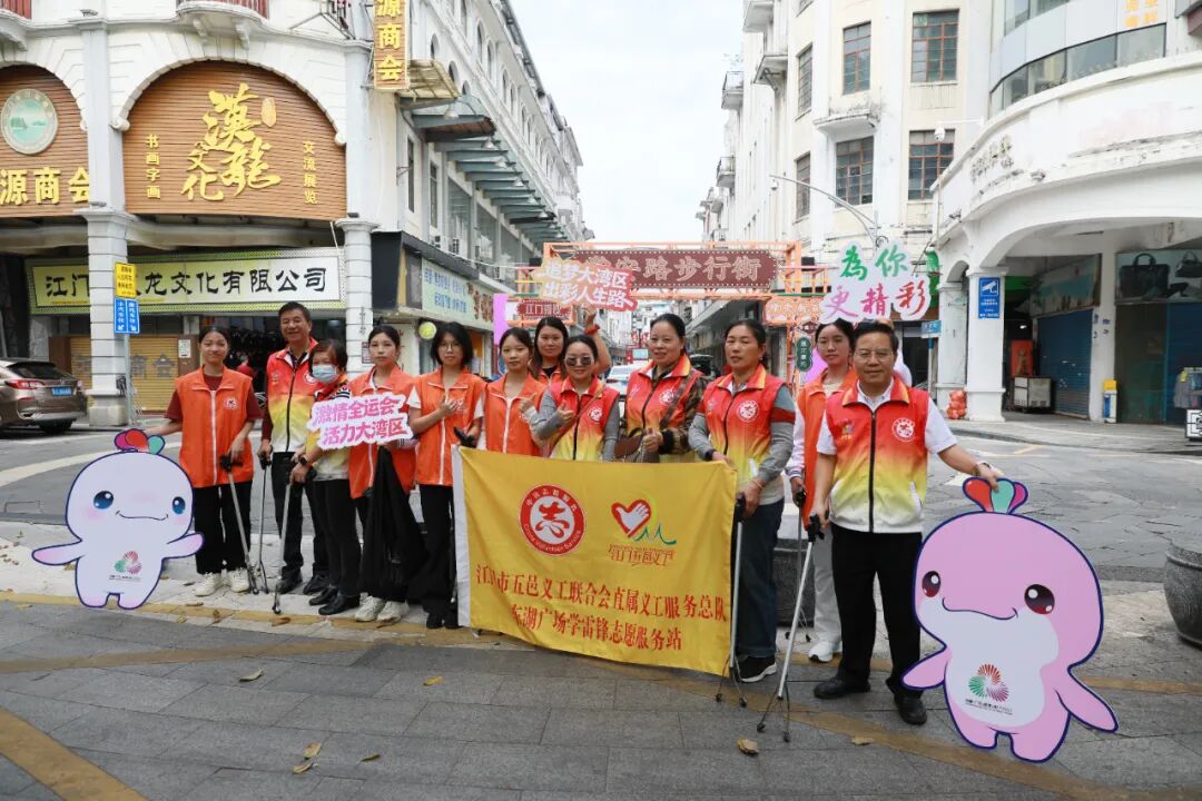 10月26日上午,江门市委社会工作部、市文明办、市文广旅体局、团市委、市残联在承载着百年侨乡记忆的长堤青年广场,举办十五运会和残特奥会城市志愿服务四大行动示范活动暨“志愿全运,精彩侨都”爱国卫生运动专项行动,标志着江门十五运会和残特奥会城市志愿服务全面铺开。